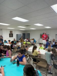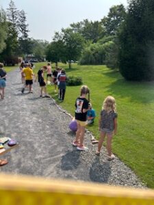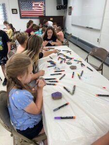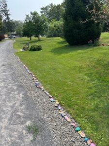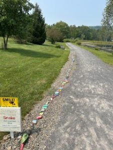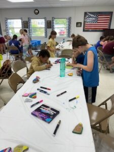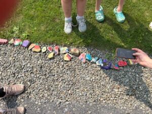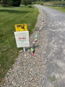 Painting rocks for the snake at the pond
